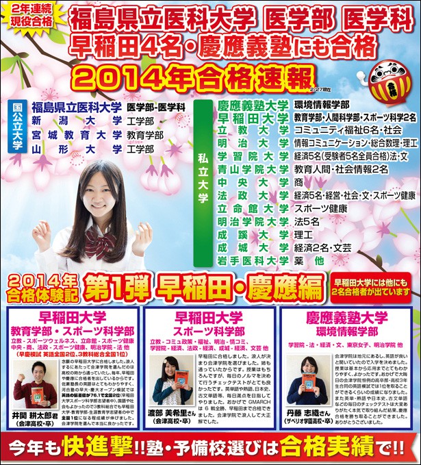 早稲田大学-教育学部・人間科学部・スポーツ科学部2名