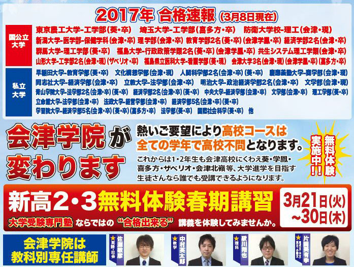 会津大学3名(会津・現)(会津学鳳・卒)(喜多方・卒)