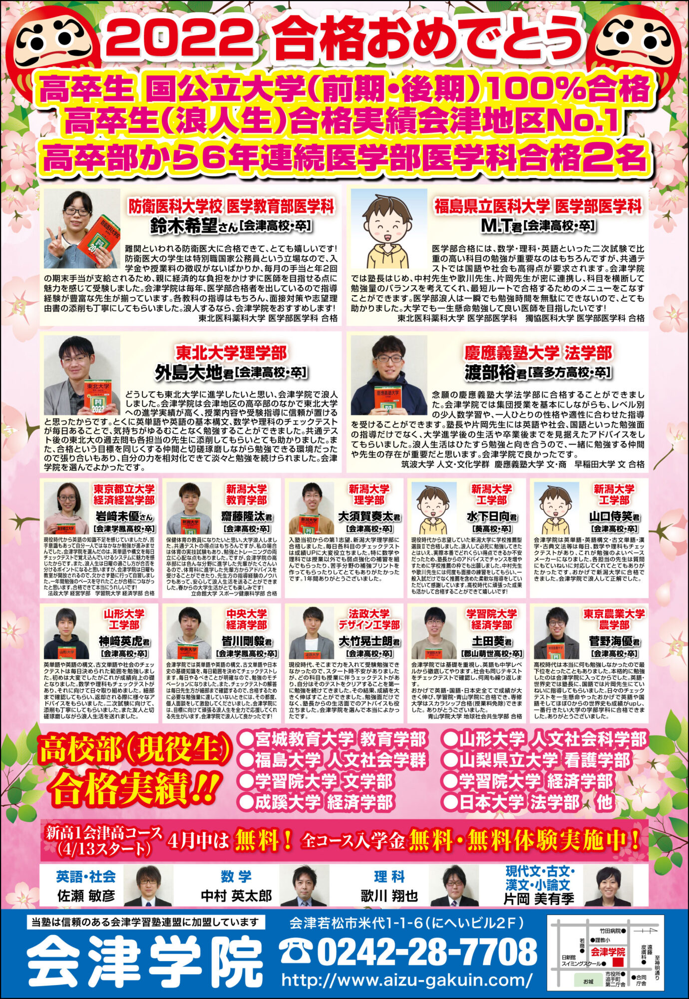 会津学院 – 会津若松市の大学受験専門 予備校・進学塾 0242-28-7708
